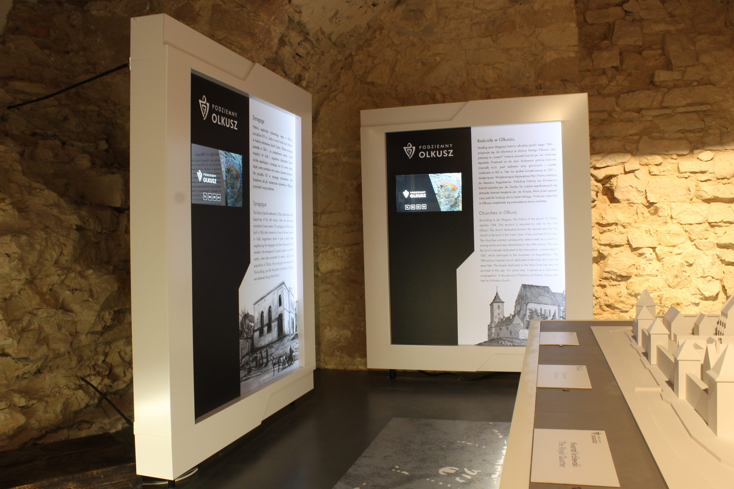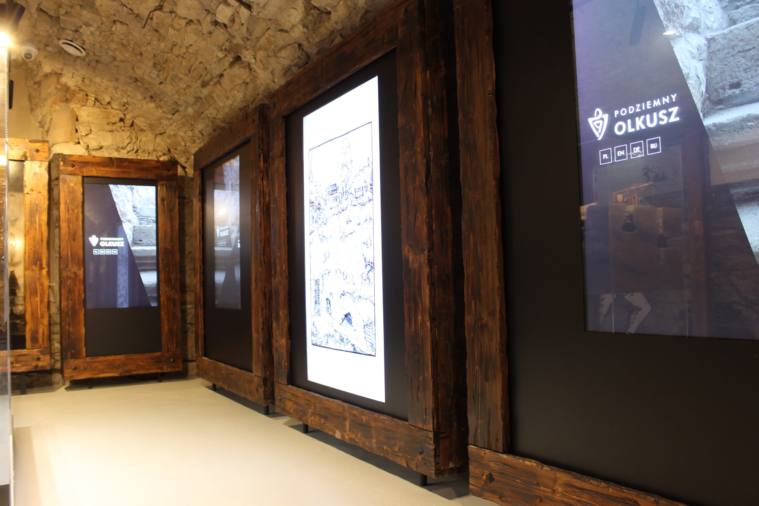 Głównym założeniem zrealizowanego w 2021r. projektu „Rewitalizacja kwartału królewskiego w Olkuszu oraz utworzenie multimedialnej trasy turystycznej w podziemiach ratusza” było odnowienie niszczejącego już, zlokalizowanego przy samym rynku budynku Dawnego Starostwa oraz stworzenie nie jednej, a dwóch wizytówek Miasta. Mowa o nowoczesnych przestrzeniach wystawienniczych zlokalizowanych w podziemiach Dawnego Starostwa oraz w podziemiach historycznego ratusza miejskiego. Pierwsza opowiada historię olkuskiego górnictwa oraz mennicy królewskiej, natomiast ta druga skupia się na dziejach miasta i wybitnych ludzi z nim związanych. Już pierwsze minuty spędzone w Podziemnym Olkuszu wskazują na wielką uwagę, jaką poświęcono na stworzenie nowoczesnej ekspozycji, przy jednoczesnym zachowaniu zabytkowego charakteru tej przestrzeni. Z jednej strony wielki ekran prezentujący obraz z wysokiej klasy rzutników multimedialnych, a z drugiej wyeksponowane zabytkowe kamienne ściany podziemi ratusza. Czy chociażby nowoczesne ekrany LED obite grubymi na kilkanaście centymetrów drewnianymi belkami. Połączenie „starego” z „nowym” w przypadku Podziemnego Olkusza działa zaskakująco dobrze. Atrakcyjna przestrzeń wystawiennicza została zrealizowana przy połączeniu tradycyjnej ekspozycji, nowoczesnych technologii i oryginalnych elementów wystroju.
